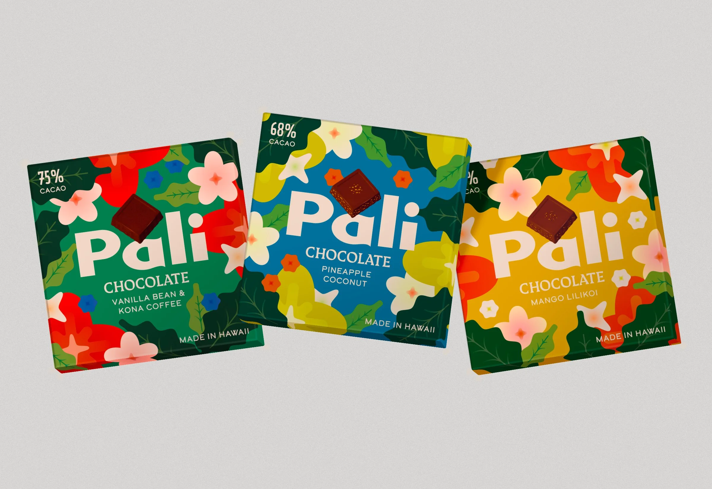 Pali is a Maui-based chocolate company specializing in simple yet exquisite chocolate bars infused with the classic flavors of Hawaii. With a mission to share the beauty and richness of Hawaiian culture, Pali creates small, beautifully crafted chocolates that serve as perfect souvenirs for visitors to the islands. This project focused on designing packaging for Pali's initial three flavor launches, featuring rich, vibrant, and eye-catching illustrations that capture the essence of Hawaii.